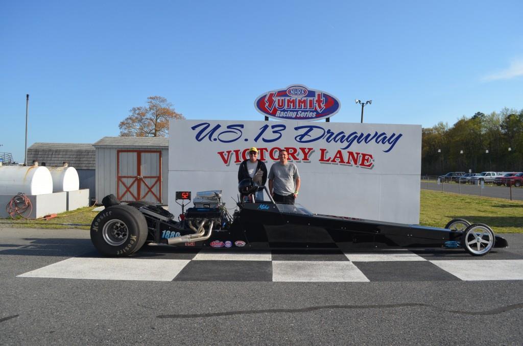 By Charlie Brown, Delmar, DE (4/21/13) – Former champion, Mike Jones of Salisbury, Md. had an outstanding final round to win in Super Pro over John Myers of Glen Burnie, Md. Sunday at the U.S. 13 Dragway. Other winners on the day included: Ben Garnett of Smyrna, Del. in Pro; Charles Nock of Greenwood, Del. in Pro Bike; Frank Parks of Denton, Md. in Street Eliminator; Keith Riddle of Millsboro, Del. in Jr. Dragster 1 and Cortney Cathell of Laurel, Del. in Jr. Dragster 2.