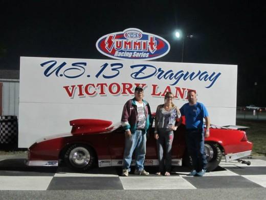 By Charlie Brown, Delmar, DE (6/21/13) – Second generation drag racer, Billy Groton of Seaford, Del. was back in victory lane for the second time in six weeks as he captured the Super Pro final, Friday night at the U.S. 13 Dragway. Rick Willey of Whaleysville, Md. posted his first win of the season in Pro while defending point champion, James Farmer of Denton, Md. added another win in Pro Bike. Other winners on the night were: Hunter Milligan of Bridgeville, Del. in Street, Brittany Hooper of Hurlock, Md. in Jr. Dragster 1 and Christian Walston of Crisfield, Md. in Jr. Dragster 2.