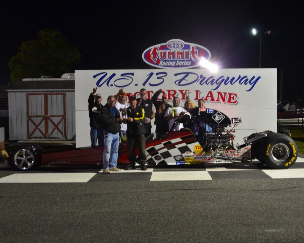 Chad Thurman of Vienna, Md. met Doug Sylvester of Seaford, Del. in the Pro final. Sylvester left early and fouled and Thurman made a full pass for the win with a 9.842/136.15 on a 9.34 dial. The win was worth $800 for Thurman. Semi-finalist was Roger Ridgeway, Jr. of Dover, Del. who lost to Thurman while Sylvester had the bye.