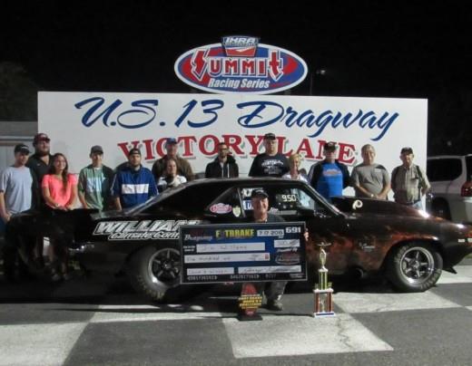 By Charlie Brown, Delmar, DE – Jerry Ketterman’s Quick 8 Footbrake Challenge was a big success on Friday night at the U.S. 13 Dragway and coming out on top was Jim Williams of Seaford, Del. Williams defeated Bill Taylor in the final and walked away with a $500 bonus. Steven Truitt of Parsonsburg, Md. kept Ben Parks from the “three-peat� in Top Eliminator and Chad Thurman of Vienna, Md. was back on top in Pro. Other winners on the night included: Drew Birch of Whaleysville, Md. in Pro Bike; Josh Davis of Seaford in Street; Roger Collins of Georgetown, Del. in Hot Rod; Carter Foskey of Rhodesdale, Md. in Jr. Dragster 1 and Alexis Truitt of Parsonsburg in Jr. Dragster 2.